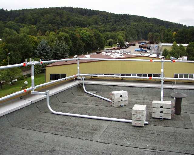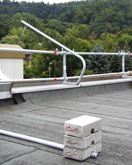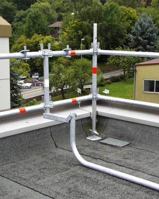 Eine weitere Absicherung der Baustelle bietet die Flachdachrandsicherung / Flachdachabsturzsicherung (siehe Galerie).