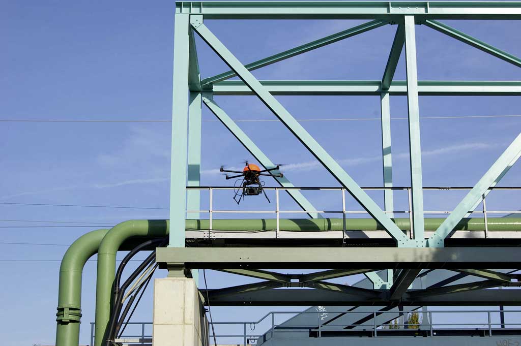 Vermessungen (Photogrammetrie)/ Bestandsaufnahme (georeferenziert)/ 3D-Rekonstruktion: Ausgestattet mit Kamera oder Laserscanner erfassen wir mit unserem Flugroboter ganze Gebäude oder Anlagen zur nachträglichen Weiterverarbeitung oder zur Bestandsaufnahme.
