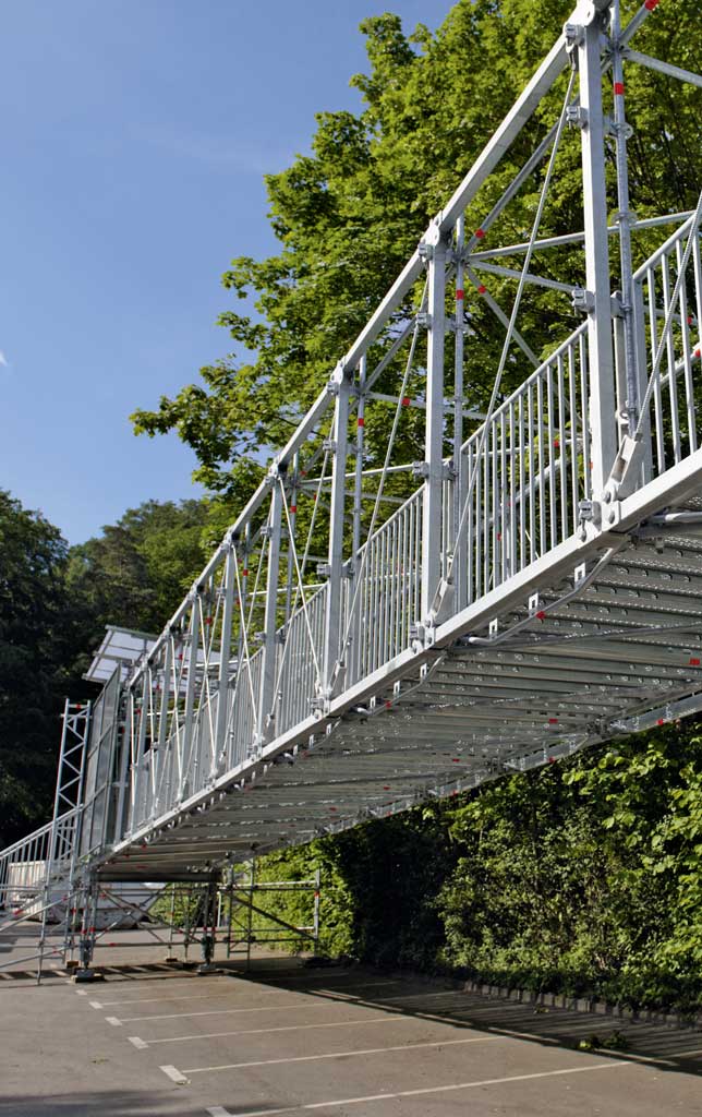 Der modular aufgebaute Brückenträger ermöglicht den Bau von weitgespannten Fußgängerbrücken, z. B. bei Großveranstaltungen oder Bauarbeiten sowie sehr tragfähige Abfangkonstruktionen, Spannweiten je nach Belastung bis 33,40 m.